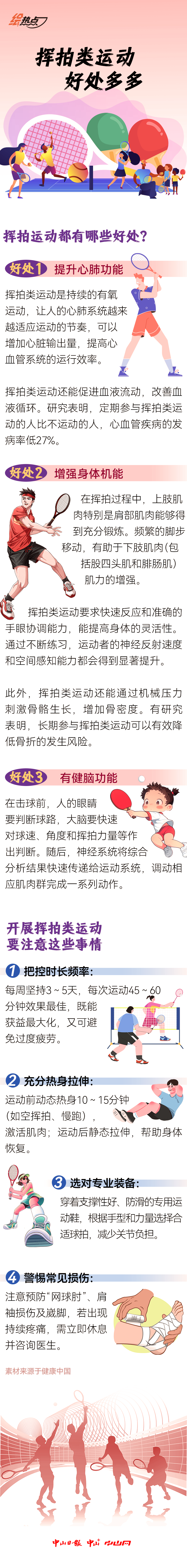 羽毛球、網(wǎng)球、乒乓球……你來(lái)我往,好不激烈。大家可別小看這簡(jiǎn)單的揮拍。一項(xiàng)發(fā)表在國(guó)際權(quán)威醫(yī)學(xué)期刊《柳葉刀》上的研究結(jié)果顯示,揮拍類運(yùn)動(dòng)(主要包括網(wǎng)球和羽毛球)可降低47%的全因死亡率(即所有原因?qū)е碌乃劳雎剩?。讓我們一起?lái)看看揮拍運(yùn)動(dòng)對(duì)人體健康有哪些好處。