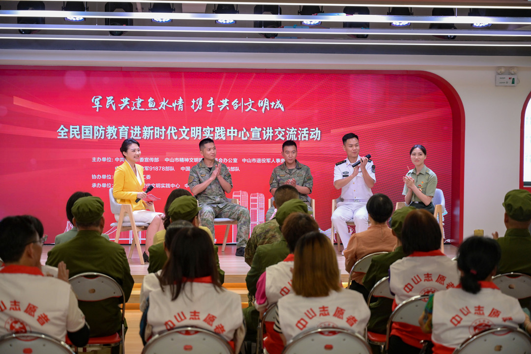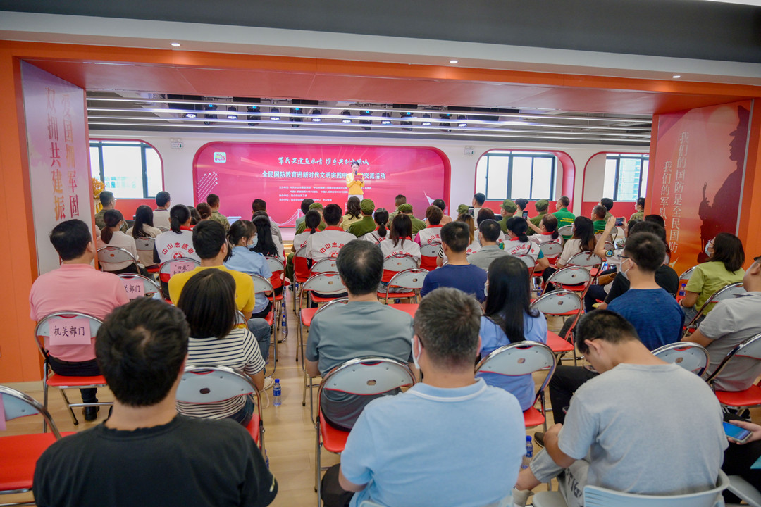 5月18日下午,全民國防教育進新時代文明實踐中心宣講交流活動在中山市民眾街道新時代文明實踐中心舉行,退役軍人代表、基層群眾、村干部以及受邀出席的中國人民解放軍91878部隊、69316部隊官兵代表等200余人參加活動。  活動現場。記者 易承樂 攝