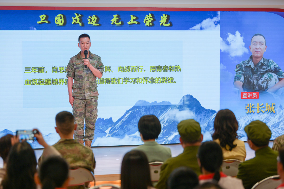 張長城:肖思遠的名字永遠留在連隊 “我是69316部隊加勒萬邊防連‘肖思遠班’班長張長城,很高興今天有機會跟大家進行交流。三年前,肖思遠班長兩闖敵陣、向戰(zhàn)而行,用青春和熱血筑起巍峨界碑,是永遠值得我們學習和懷念的英雄……” 張長城現場作了主題為《衛(wèi)國戍邊 無上榮光》的宣講。 張長城說—— 肖班長犧牲后,連隊組建了“肖思遠班”,班里有一張肖班長的床,每天晚上,戰(zhàn)士們都會將肖班長的被子打開,早上起床再將被子工工整整的疊好;晚上點名,班里的同志輪流向肖班長匯報本班和個人的工作。 連隊每天的點名,呼點的第一個名字永遠是“肖思遠”,全連齊聲答“到、到、到”,那一刻,感覺下面所有人,望過去都是他! ▌與現場基層干部群眾互動交流
