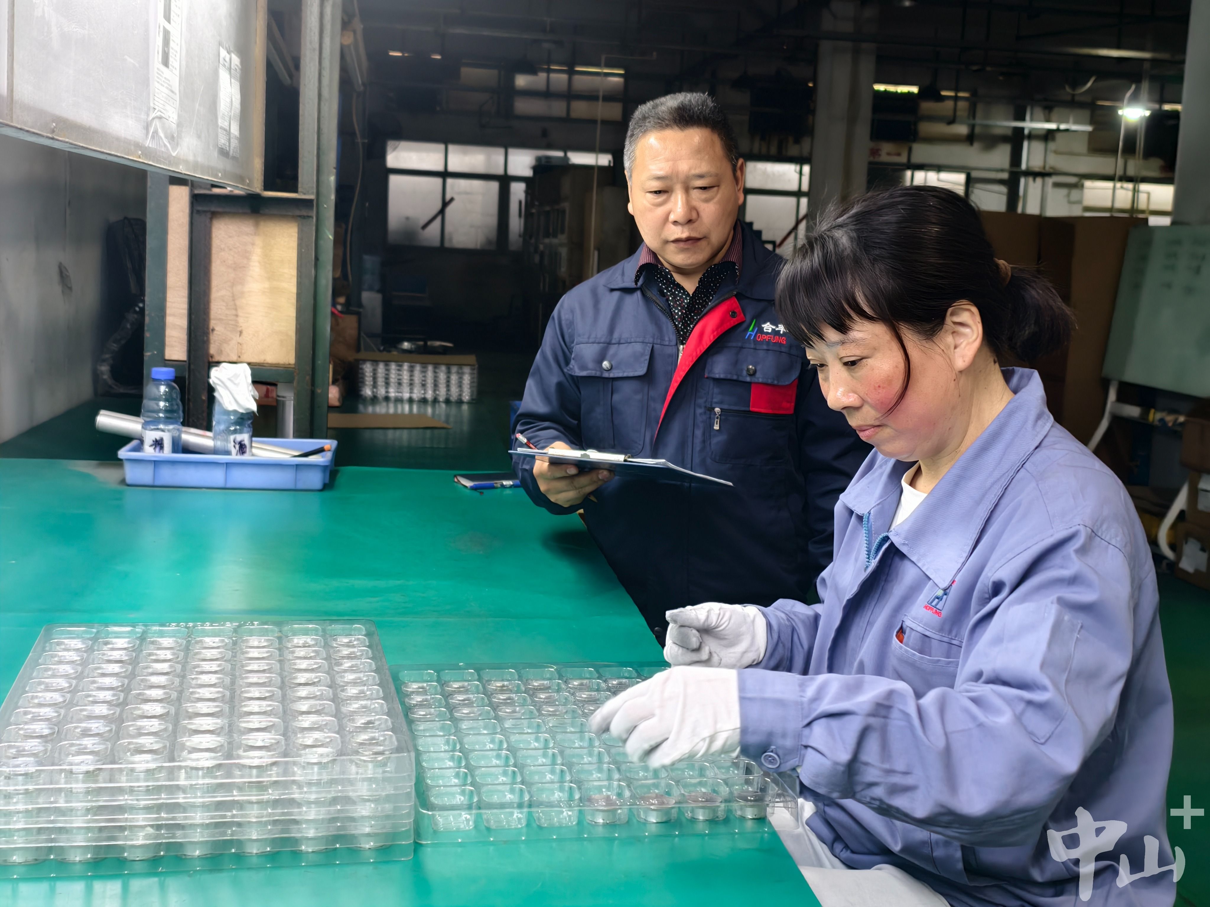 何虎在工廠車間檢查產(chǎn)品質(zhì)量。記者 林燕英 攝