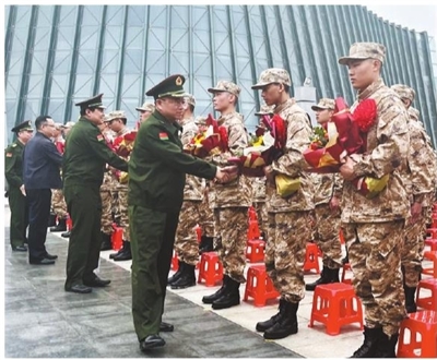 李云濤、劉燦瑩、魯罡等領(lǐng)導(dǎo)到場(chǎng)歡送新兵。