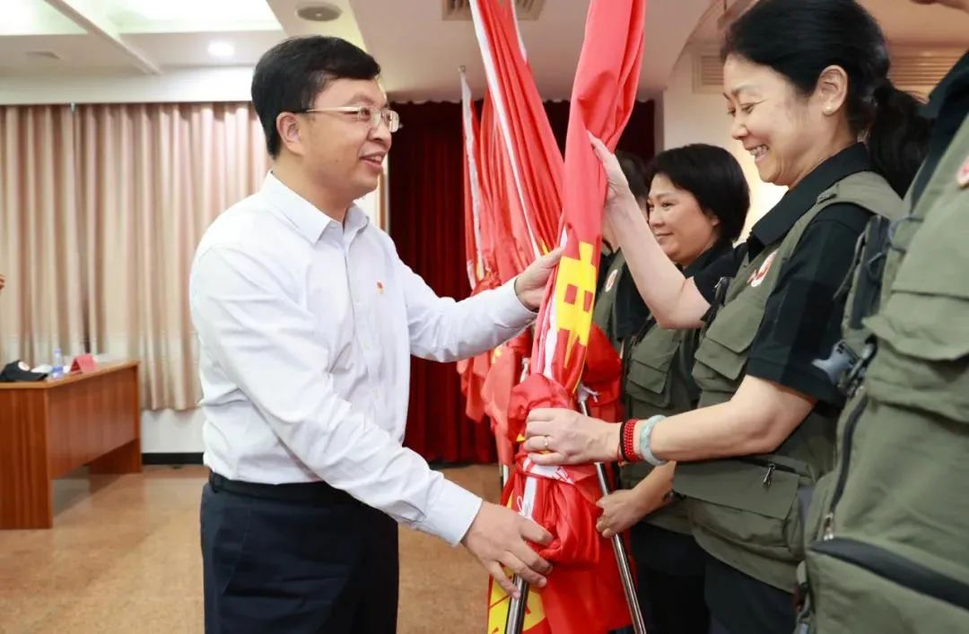 同時,還為全市26支退役軍人紅旗志愿隊進行授旗。