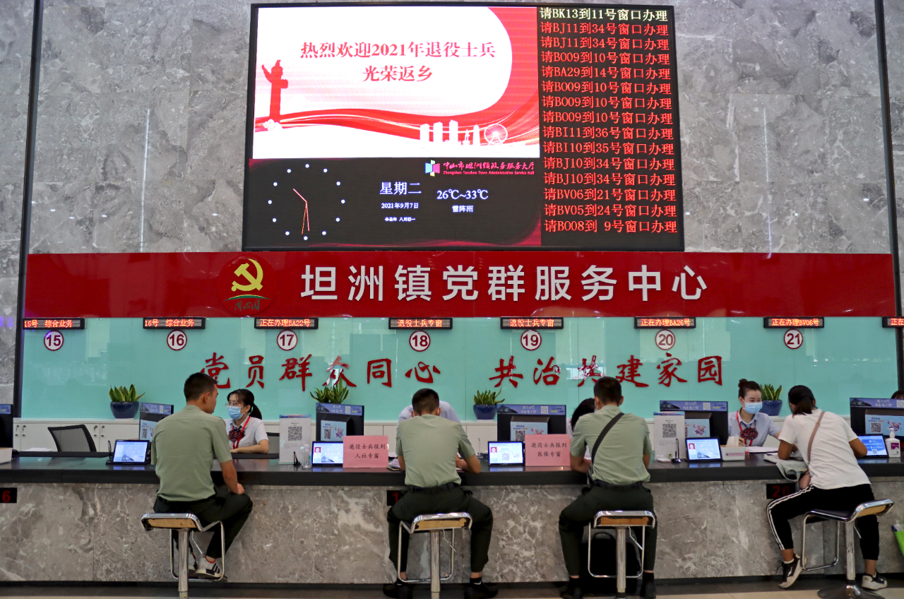 進(jìn)入9月份,坦洲鎮(zhèn)陸續(xù)迎來返鄉(xiāng)報到的2021年秋季退役士兵。為進(jìn)一步提升服務(wù)水平,切實讓返鄉(xiāng)退役士兵感受到家鄉(xiāng)的溫暖和社會的尊崇,坦洲鎮(zhèn)公共服務(wù)辦公室、退役軍人服務(wù)中心聯(lián)合鎮(zhèn)人民武裝部、公安分局、人社分局等部門,提前謀劃、精心組織,想退役士兵之所想,急退役士兵之所急,竭誠為戰(zhàn)友們提供溫馨便捷的“一站式”服務(wù)。