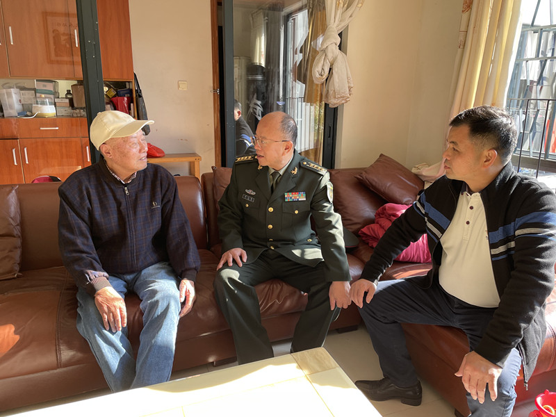 迎新春,送溫暖。1月19日,中山軍分區(qū)、中山市退役軍人事務(wù)局到南區(qū)街道聯(lián)合開展2023年春節(jié)走訪慰問活動(dòng),慰問因公十級(jí)殘疾軍人和現(xiàn)役軍人家屬,向他們致以新春的問候和美好祝愿。中山軍分區(qū)大校司令員李云濤參加慰問。 李云濤一行先后來到現(xiàn)役軍人家屬曹軍民和因公十級(jí)殘疾軍人胡華銀的家中,為他們送去慰問金和大米、食用油、面條、春聯(lián)等慰問品,并送去新年的祝福和關(guān)懷。 在現(xiàn)役軍人曹秦的家中,李云濤感謝其家人為部隊(duì)輸送了優(yōu)秀人才,為國防建設(shè)作出了突出貢獻(xiàn)。據(jù)了解,曹軍民的兒子曹秦于2022年9月入伍,服役于新疆烏魯木齊武警總隊(duì)。曹軍民表示,非常感謝黨和政府對(duì)現(xiàn)役軍人家庭的關(guān)心,把孩子交給部隊(duì)很放心。  ▲李云濤一行慰問84歲高齡的老兵胡華銀(左一)。 記者 張倩 攝