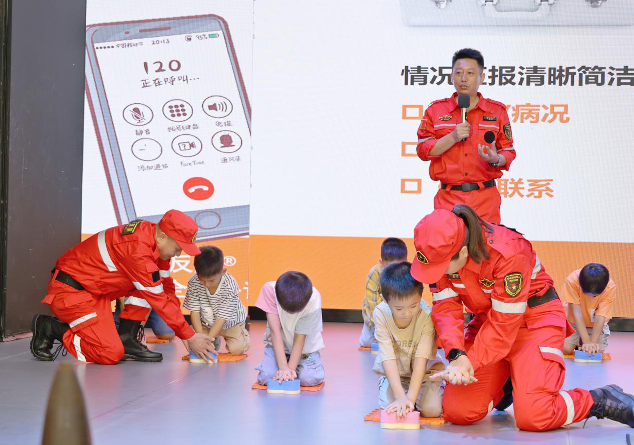 中山市擁軍支前紅旗服務(wù)隊(duì)隊(duì)長孫宏寧通過安全教育宣傳片、實(shí)際案例、情景模擬、互動問答等形式,從應(yīng)急救護(hù)、如何進(jìn)行心肺復(fù)蘇、120呼叫需要提何種信息等與青少年生活息息相關(guān)的內(nèi)容為小營友們講授暑期“安全第一課”,讓安全意識、安全技能深入到在場每位學(xué)生、每個(gè)家庭,希望小營友們在快樂過暑假的同時(shí)安全不“放假”。  國防教育現(xiàn)場。