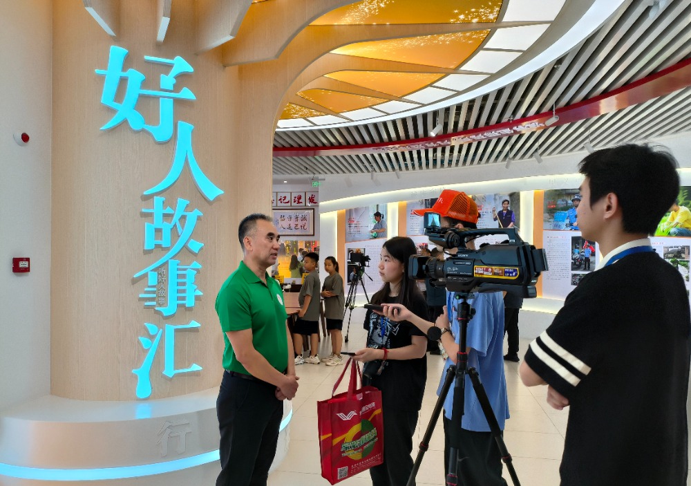 本次調(diào)研中,來自中央、省、市約20家媒體的記者,先后走訪東鳳鎮(zhèn)退役軍人服務(wù)中心、中山好人館等地。通訊員供圖 16日上午,媒體采風(fēng)團(tuán)來到了中山好人館,退役軍人代表李克和孫宏寧帶領(lǐng)采風(fēng)團(tuán)觀摩好人館,并介紹了退役軍人在志愿服務(wù)上如何為推動全市的社會道德建設(shè)貢獻(xiàn)力量。“中山退役軍人利用志愿服務(wù),宣傳了軍人作風(fēng)優(yōu)良的傳統(tǒng),這種公益形式也是對社會力量的補(bǔ)充,能夠?qū)θ鐣鸬桨駱幼饔?。”了解到中山市博愛擁軍志愿服?wù)隊(duì)深入基層開展國防和愛國主義教育、中山市擁軍支前紅旗服務(wù)隊(duì)參與各項(xiàng)日常生活應(yīng)急救援的事跡后,《小康》雜志記者王莉華說,中山市退役軍人深度參與公益所展現(xiàn)出的擔(dān)當(dāng)和作為給她留下深刻印象。中國報道網(wǎng)《前沿資訊》欄目主編陳偉贊發(fā)出感慨,“志愿服務(wù)隊(duì)的工作非常扎實(shí),退役軍人服務(wù)中心在用心用情服務(wù)退伍老兵上也做得很到位?!?/p>  退役軍人代表李克接受采訪。通訊員供圖