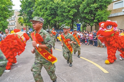 身著迷彩服,佩戴光榮花,一張張青春臉龐上滿是憧憬之情。金秋九月,中山又一批有志青年背上行囊,意氣風發(fā)奔赴軍營。 今年下半年,全市共有3000多名適齡青年報名應征,經(jīng)過體檢、政治考核、役前教育等層層選拔,共征集了300多名男兵,在讀大學生征集比例、大學畢業(yè)生征集比例再創(chuàng)歷史新高,圓滿完成了上級賦予的任務。 “希望你們不管在何處服役,是哪個兵種,都銘記父老鄉(xiāng)親的殷殷囑托,在部隊大力弘揚中山‘敢想敢闖、敢為人先’的精神,展示出‘中山兵’的良好精神風貌,沖鋒在前、勇?lián)笕?、奮斗奉獻,努力為中山增光添彩。祝新戰(zhàn)友們一路順風,刻苦訓練,能打勝仗,捷報頻傳!”在出席中山2023年下半年新兵歡送儀式時,中山市征兵工作領導小組副組長、中山軍分區(qū)大校司令員李云濤鄭重地說。 來自三鄉(xiāng)鎮(zhèn)的新兵代表馮林研究生畢業(yè)于青島農(nóng)業(yè)大學,他鄭重承諾:“到部隊后我們一定牢記使命,安心服役、刻苦訓練、嚴守紀律、積極進取,為祖國和平安寧扛好槍、站好崗,不辜負國家和家鄉(xiāng)人民的期望!” 敲鑼打鼓,列隊歡迎。一場歡送儀式,就是一次生動的國防教育。歡送儀式上,除了以東鳳鎮(zhèn)新兵張學培家庭“三代從軍”事跡為背景創(chuàng)作的原創(chuàng)詩歌朗誦《致敬夢想的接力》、男聲四重唱《強軍戰(zhàn)歌》等文藝表演,新兵還展示了軍體拳,動作干凈利落整齊,儼然已有軍人的模樣。現(xiàn)場,省級非物質(zhì)文化遺產(chǎn)起灣金龍展演也來助陣,只見金龍起舞、鑼鼓喧天,熱鬧非凡。 兒行千里母擔憂,歡送現(xiàn)場,不少家長熱淚盈眶,拿起手機記錄著孩子入伍的珍貴畫面,送兵車緩緩啟動,家長們的目光卻始終不肯轉(zhuǎn)移。一路跟隨,久久不肯離去…… 登上大巴車,新兵們揮一揮手:“再見,中山!軍營,我來啦!” 記者 黃藝杰 張倩 通訊員 黃嘉裕 圖編 文智誠 ◆編輯:龍慧◆二審:蘇鵬蘊◆三審:周亞平 |