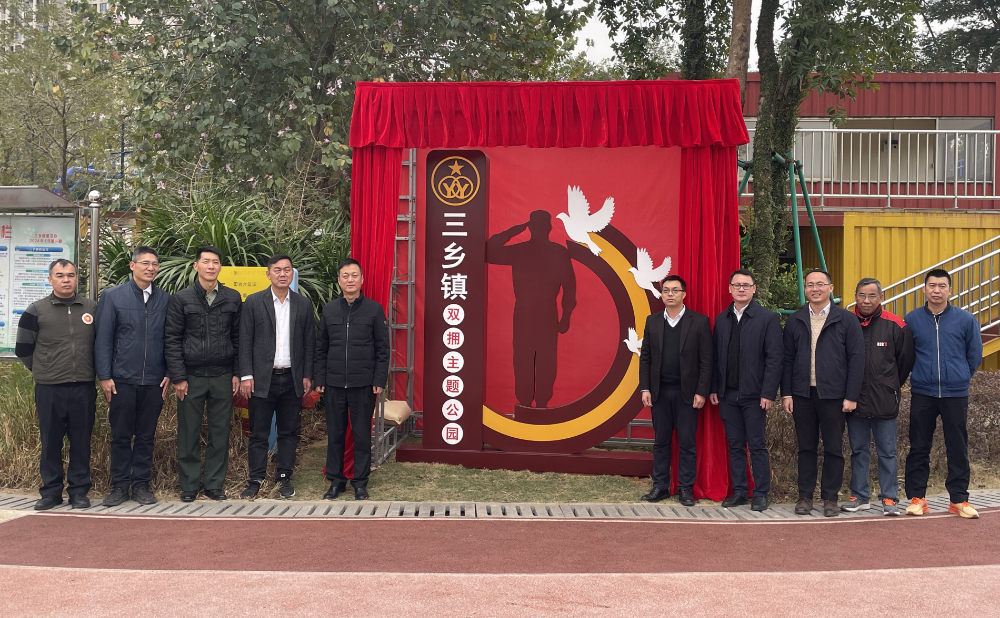 為進(jìn)一步營造“擁軍優(yōu)屬、擁政愛民”的濃厚氛圍,推進(jìn)雙擁文化深入人心,凝聚黨政軍民參與創(chuàng)建雙擁模范城的強(qiáng)大合力,中山市三鄉(xiāng)鎮(zhèn)依托南部兒童公園,打造三鄉(xiāng)鎮(zhèn)首個(gè)雙擁主題公園。1月26日下午,三鄉(xiāng)鎮(zhèn)舉行雙擁主題公園揭牌儀式。 三鄉(xiāng)雙擁主題公園揭牌儀式現(xiàn)場。