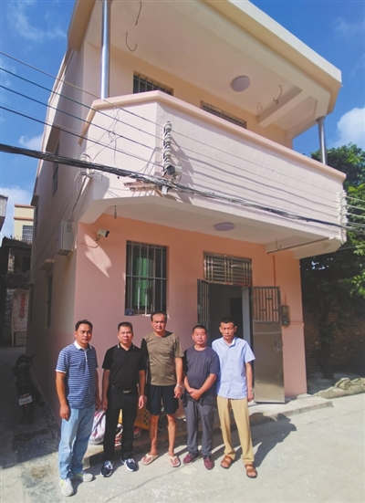 余林鋒(中)和南朗街道退役軍人服務中心工作人員在改造后的房屋前。通訊員供圖