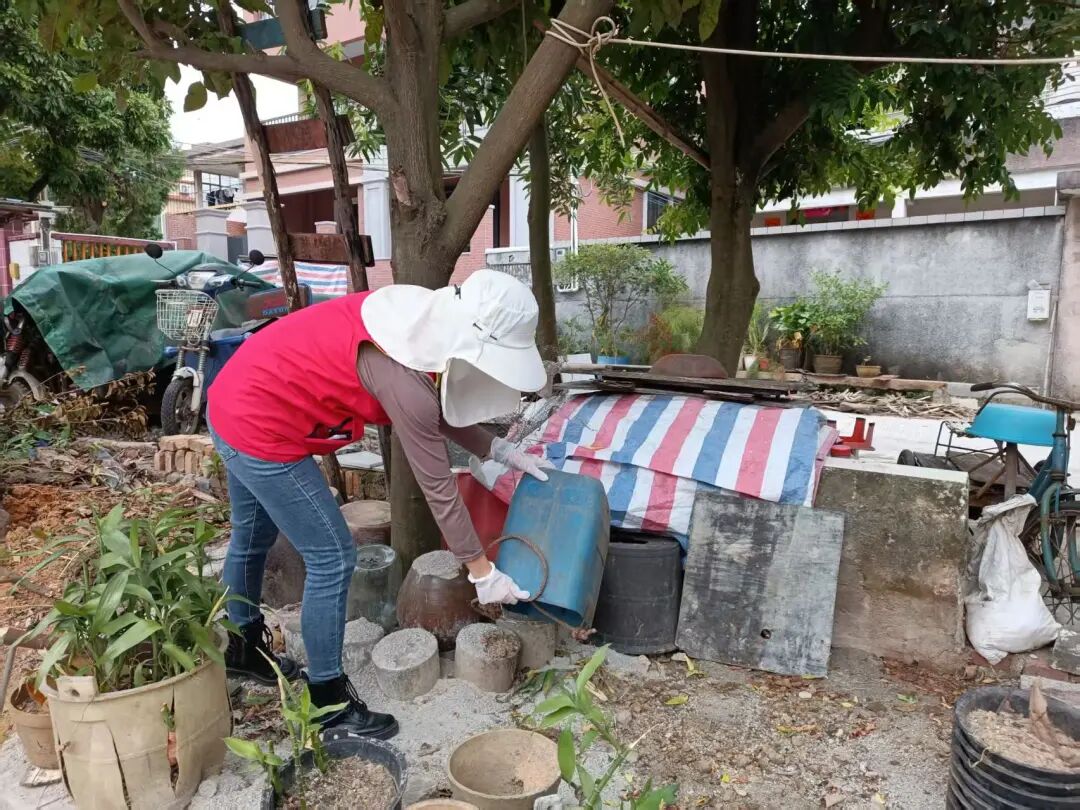 “阿姆,天氣轉(zhuǎn)涼了些但蚊蟲(chóng)沒(méi)少,這盆托里的積水得及時(shí)倒掉,房前屋后的雜物要及時(shí)清理,不然容易孳生伊蚊呀。”10月26日,翠亨新區(qū)(南朗街道)華照村志愿者小李的身影出現(xiàn)在村民家中,他一邊幫忙清理庭院積水,一邊遞上防蚊宣傳資料。這個(gè)周末,這樣接地氣的入戶(hù)宣傳場(chǎng)景,在轄區(qū) 18個(gè)村(社區(qū))同步上演。