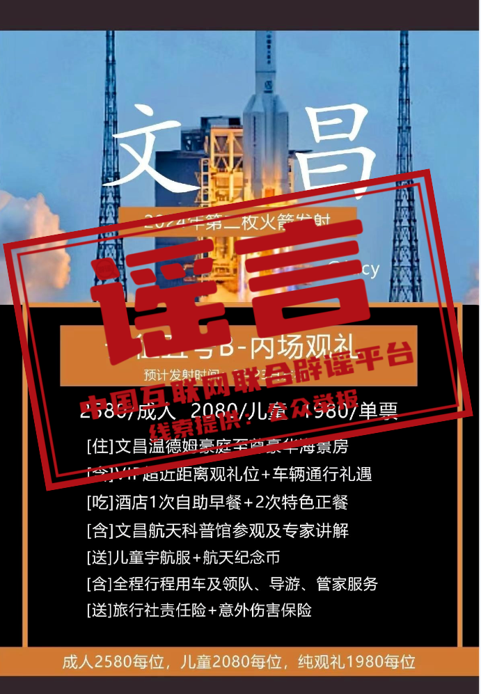 辟 謠 售賣“文昌航天發(fā)射場(chǎng)內(nèi)場(chǎng)火箭發(fā)射觀禮門票”系虛假宣傳
