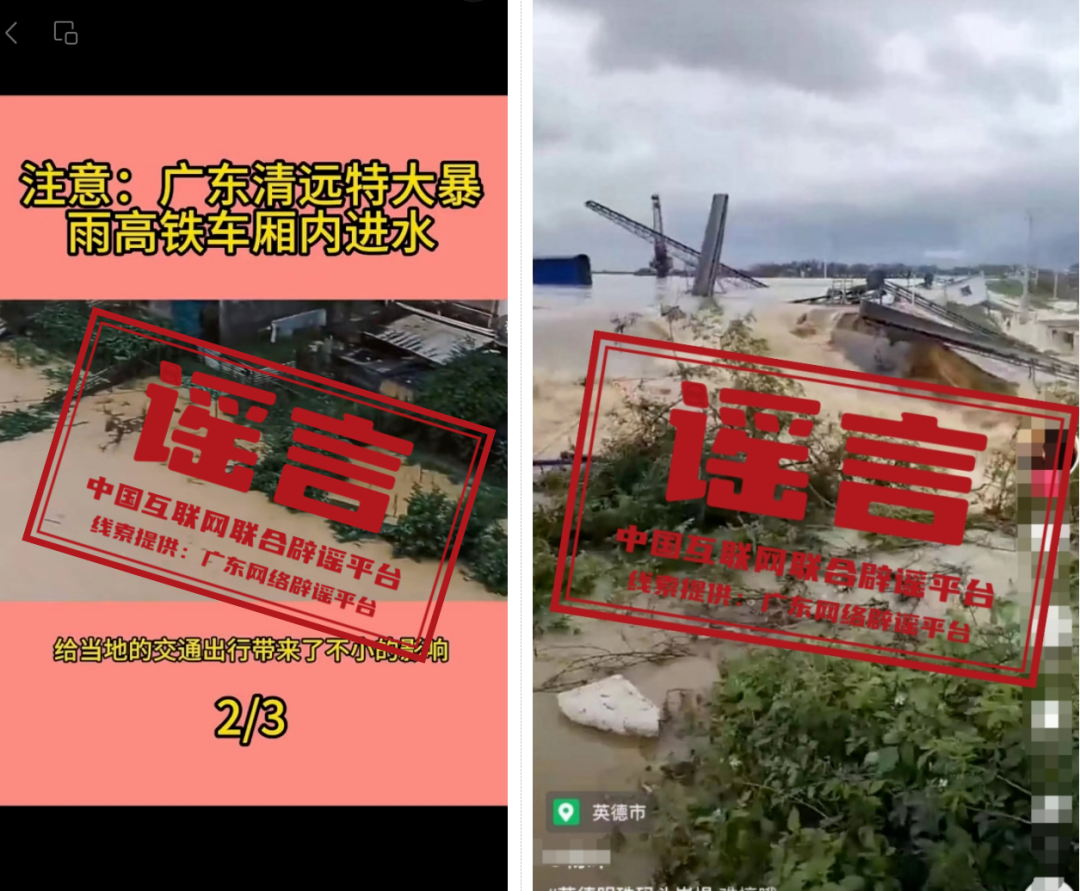 謠  途經(jīng)廣東清遠(yuǎn)的高鐵車廂進(jìn)水?清遠(yuǎn)英德洪水致碼頭崩堤?