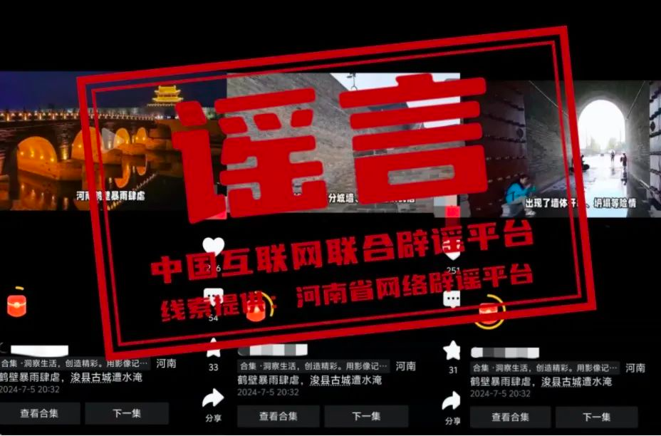 真相:近日,有網(wǎng)民在網(wǎng)絡(luò)平臺(tái)發(fā)布內(nèi)容為“河南鶴壁暴雨肆虐,浚縣古城遭水淹”的視頻信息,引發(fā)社會(huì)關(guān)注。經(jīng)核實(shí),7月5日??h出現(xiàn)暴雨天氣,強(qiáng)降雨期間??h古城北大街、東城門廣場(chǎng)等處出現(xiàn)積水情況,經(jīng)過積極排澇,雨停后路面積水很快被排空,恢復(fù)正常通行,不存在視頻中所說的“古城風(fēng)貌受損嚴(yán)重”“古城內(nèi)的部分城墻、古街巷出現(xiàn)不同程度的損毀”“古城墻出現(xiàn)了墻體開裂、坍塌等險(xiǎn)情”“古城內(nèi)的博物館、紀(jì)念館等文化設(shè)施也遭受不同程度的損失”等現(xiàn)象。該視頻多為當(dāng)?shù)嘏f聞及外地視頻嫁接拼湊。目前,??h古城秩序正常。(來源:河南省網(wǎng)絡(luò)辟謠平臺(tái)、??h古城保護(hù)建設(shè)服務(wù)中心)