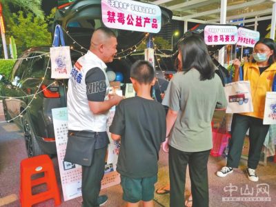 9月25日,夜幕降臨,中山市南區(qū)大信星匯店外,南區(qū)打擊治理電信網(wǎng)絡(luò)犯罪、掃黑除惡暨禁毒宣傳晚會的精彩表演吸引了不少市民駐足觀看。李德朗身穿白色的義工服,正積極向來來往往的行人介紹各款由戒毒學員制作的手工作品。被毒癮困擾多年成功戒斷的李德朗在清風自游人公益服務(wù)中心社工引導(dǎo)下加入“友心人”隊伍,成為一名義工,對徹底擺脫毒癮更有信心。
