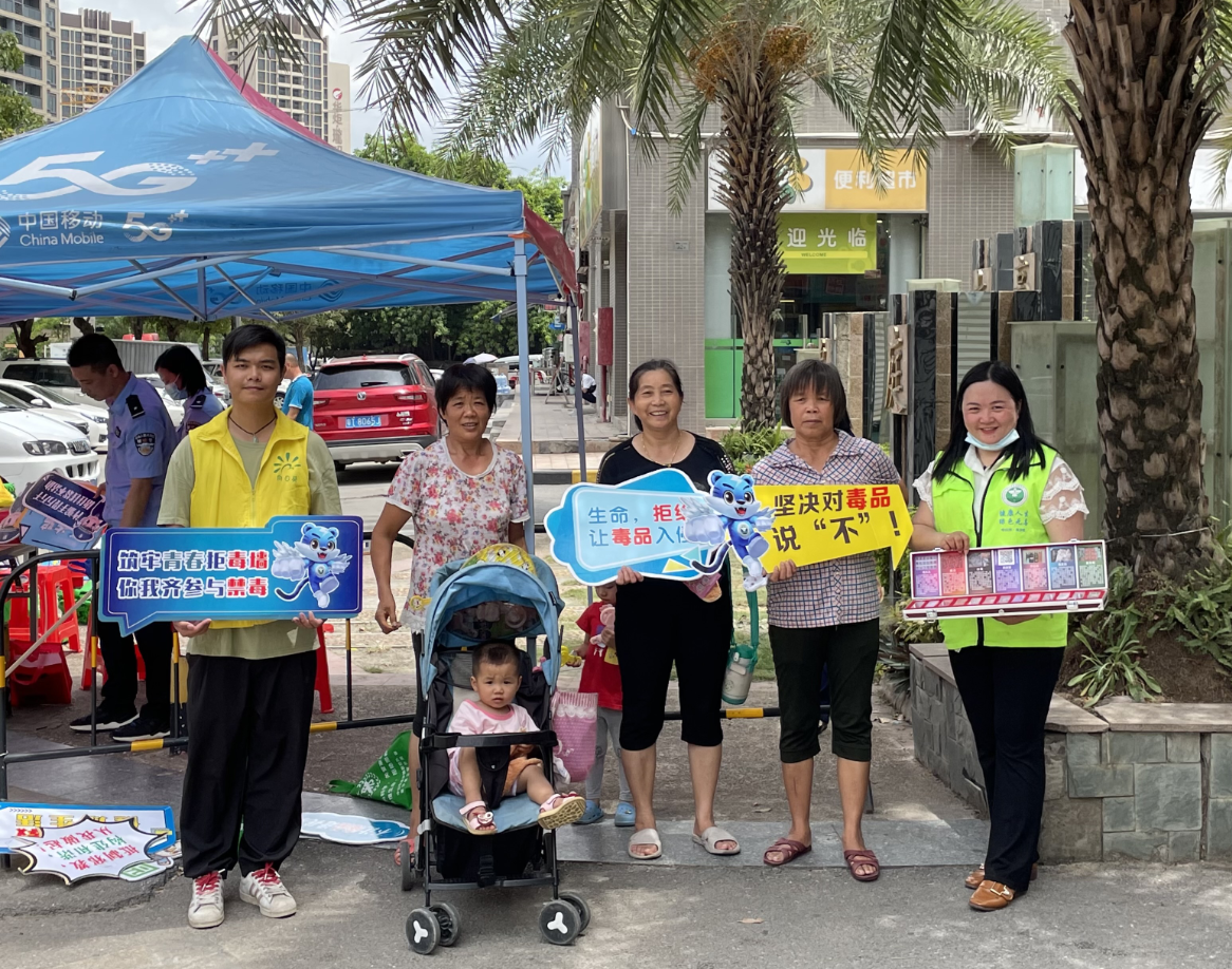 為進(jìn)一步提高阜沙鎮(zhèn)人民群眾抵制毒品的意識(shí)和能力,積極調(diào)動(dòng)廣大群眾參與禁毒的積極性。2021年6月12日下午,阜沙鎮(zhèn)禁毒辦聯(lián)合禁毒社工深入到羅松村阜豐豪庭小區(qū)一帶開展以“健康人生,綠色無毒”為主題的禁毒宣傳活動(dòng)。