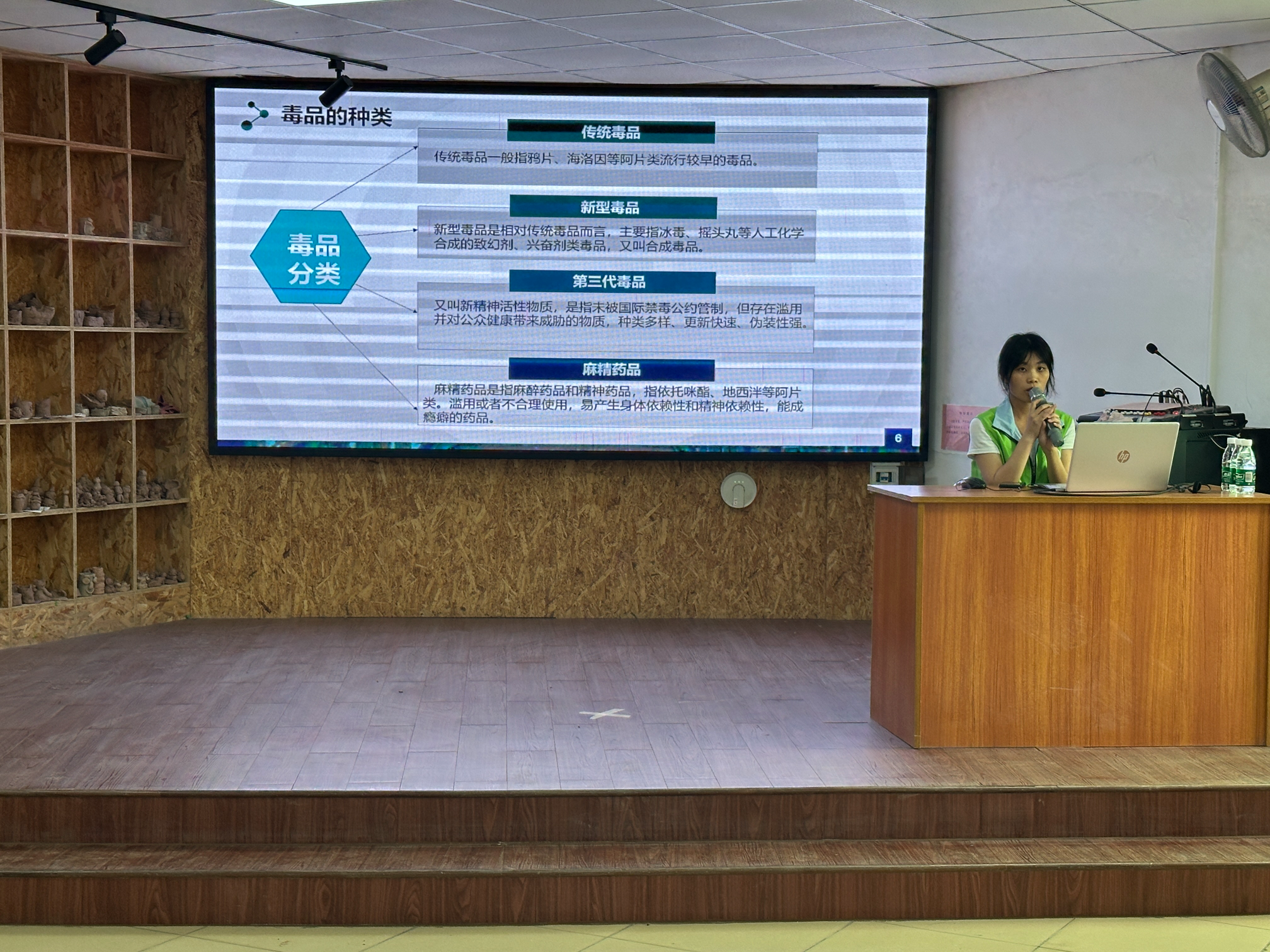 活動(dòng)現(xiàn)場(chǎng),禁毒社工通過(guò)發(fā)放宣傳資料、講解禁毒知識(shí)、介紹新型毒品類(lèi)型等方式,帶學(xué)生們深入了解到毒品的種類(lèi)以及有關(guān)知識(shí)點(diǎn)。用通俗易懂的語(yǔ)言,結(jié)合真實(shí)案例,提醒同學(xué)們不要因?yàn)楹闷嫘膶?dǎo)致誤入歧途,學(xué)會(huì)抵制毒品誘惑。同時(shí),禁毒社工倡導(dǎo)學(xué)生們要時(shí)刻牢記禁毒理念,學(xué)會(huì)真愛(ài)生命。在互動(dòng)環(huán)節(jié)上,學(xué)生們積極參與回答問(wèn)題,現(xiàn)場(chǎng)氣氛熱烈非凡,學(xué)生們更進(jìn)一步了解到毒品知識(shí)。最后,社工帶領(lǐng)大家一起宣誓禁毒誓詞,為他們的青春之路筑牢禁毒防線。