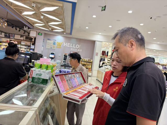 活動現(xiàn)場,禁毒專干通過展示仿真毒品模型、發(fā)放禁毒宣傳資料等形式,向商超內(nèi)的營業(yè)員及顧客介紹了常見毒品的種類、外觀特征以及它們對個人和社會造成的嚴重危害,還著重科普了“上頭電子煙”“奶茶粉”等新型毒品。這些新型毒品往往具有極強的偽裝性和欺騙性,容易讓人在不知不覺中陷入毒品的陷阱。禁毒專干提醒廣大群眾要時刻保持警覺,認清新型毒品的本質(zhì),自覺抵制毒品、遠離毒品,爭當禁毒使者,主動參與到創(chuàng)建無毒村居的隊伍中來。